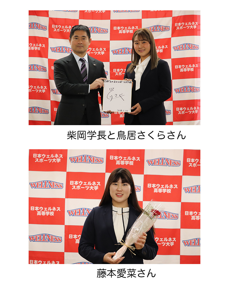 テスト終了後、鳥居さくらさん、藤本愛菜さんが来校し、2026シーズンに向けての抱負を述べ、柴岡学長や河野G.Mから祝辞をいただきました。応援を宜しくお願いします。