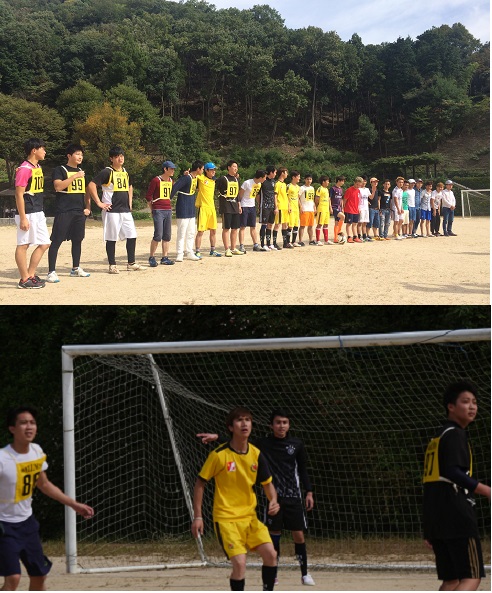 種目は、留学生が大好きなサッカーで汗をながしました。
