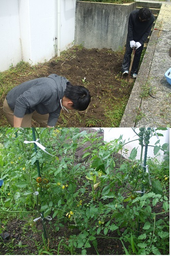 5月に植えたミニトマトなどが雑草とともに急成長しています(*^^)v