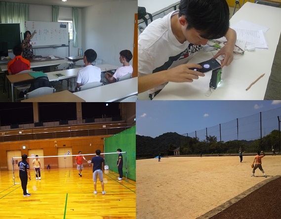 座学以外にも、生物では顕微鏡で珪藻を観察したり、体育では炎天下のグランドでソフトボールや安芸区スポーツセンターにてバドミントンで汗を流しました。